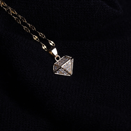 • Colar Diamante Cravejado Aço Inox Dourado Brenda