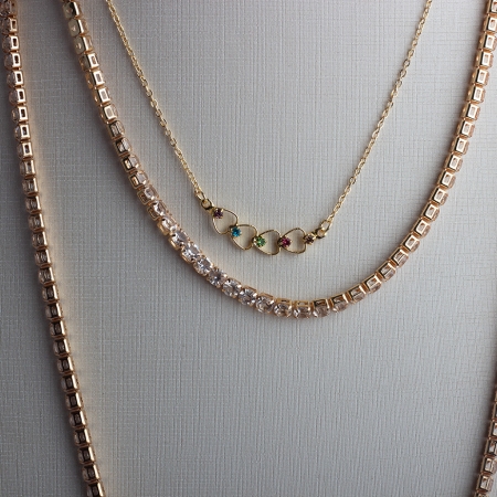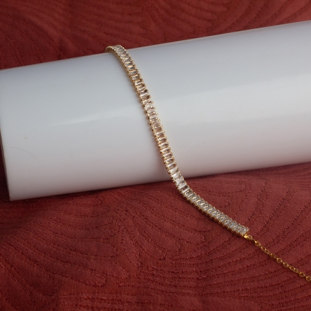• Colar Zircônia Baguete Cristal Dourado Érica