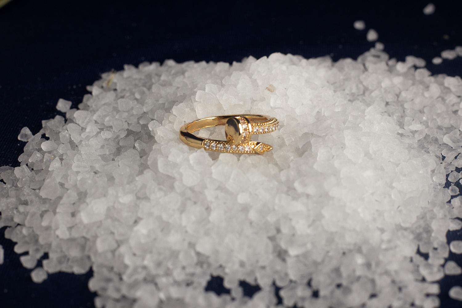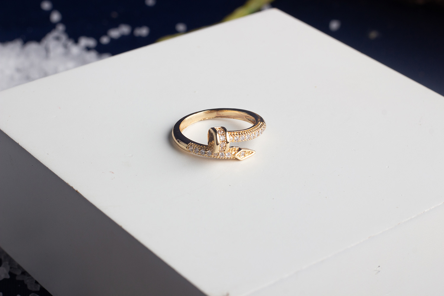 Anel prego cravejado regulavel dourado no banho de 2 milessimos