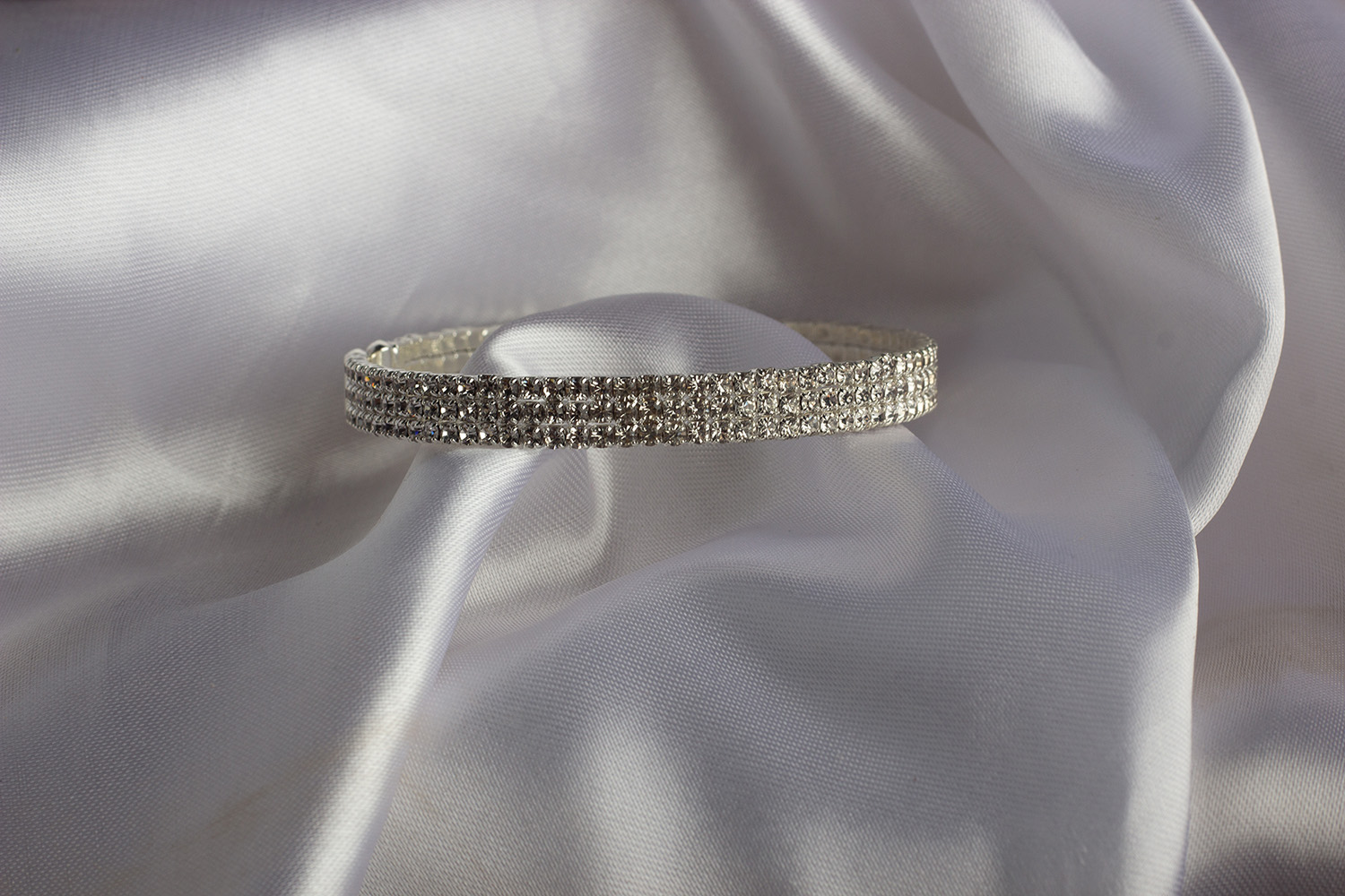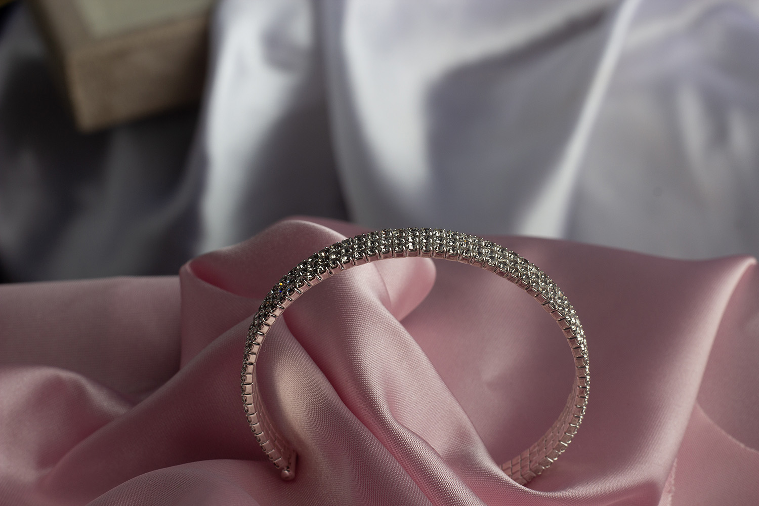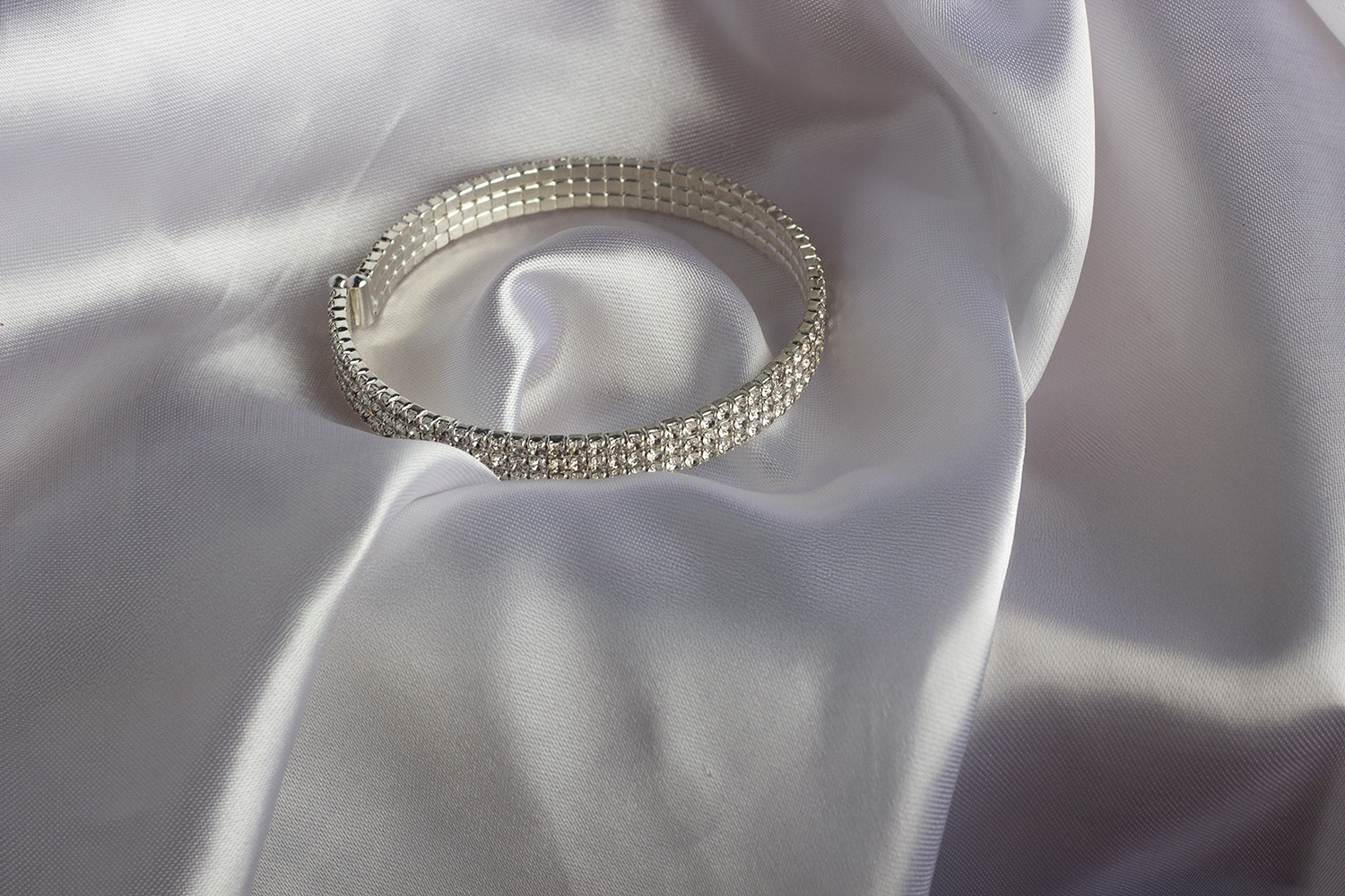 Bracelete cravejado de zircônias prata, banhado no prata.