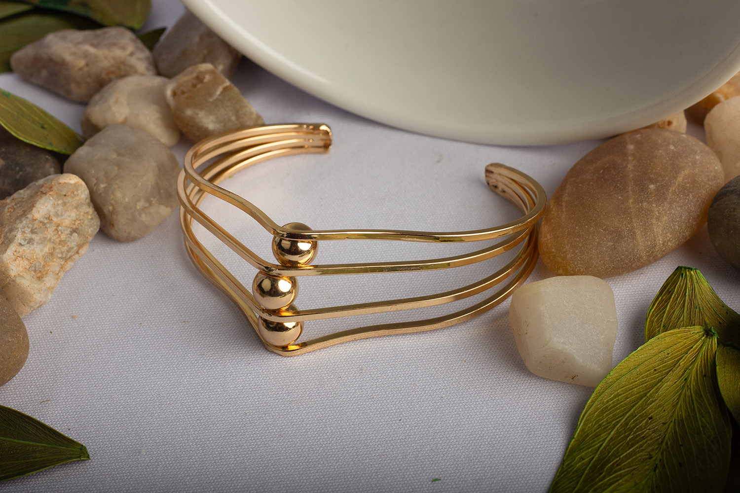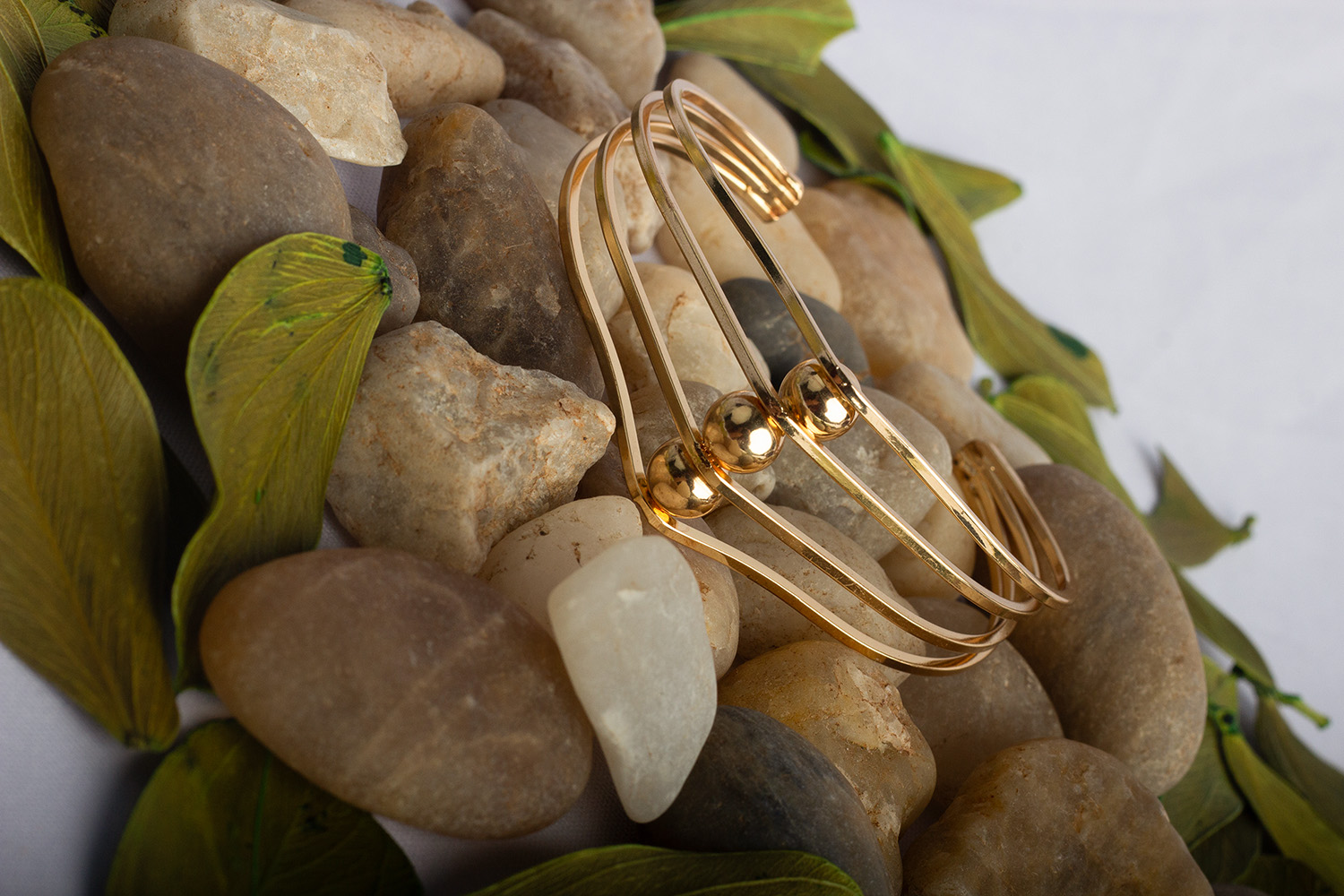 Bracelete esferas dourado no banho de 2 milessimos mais verniz.