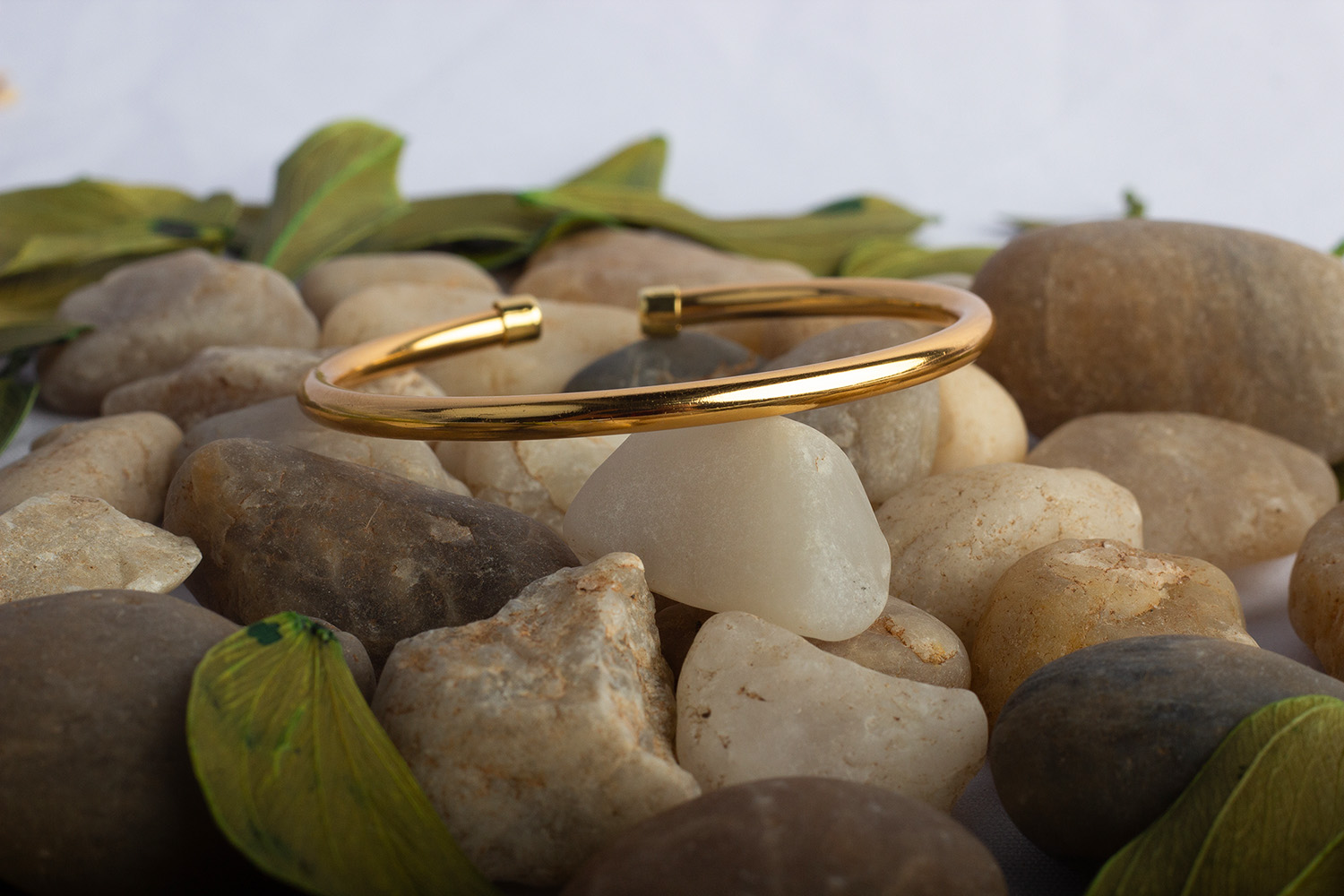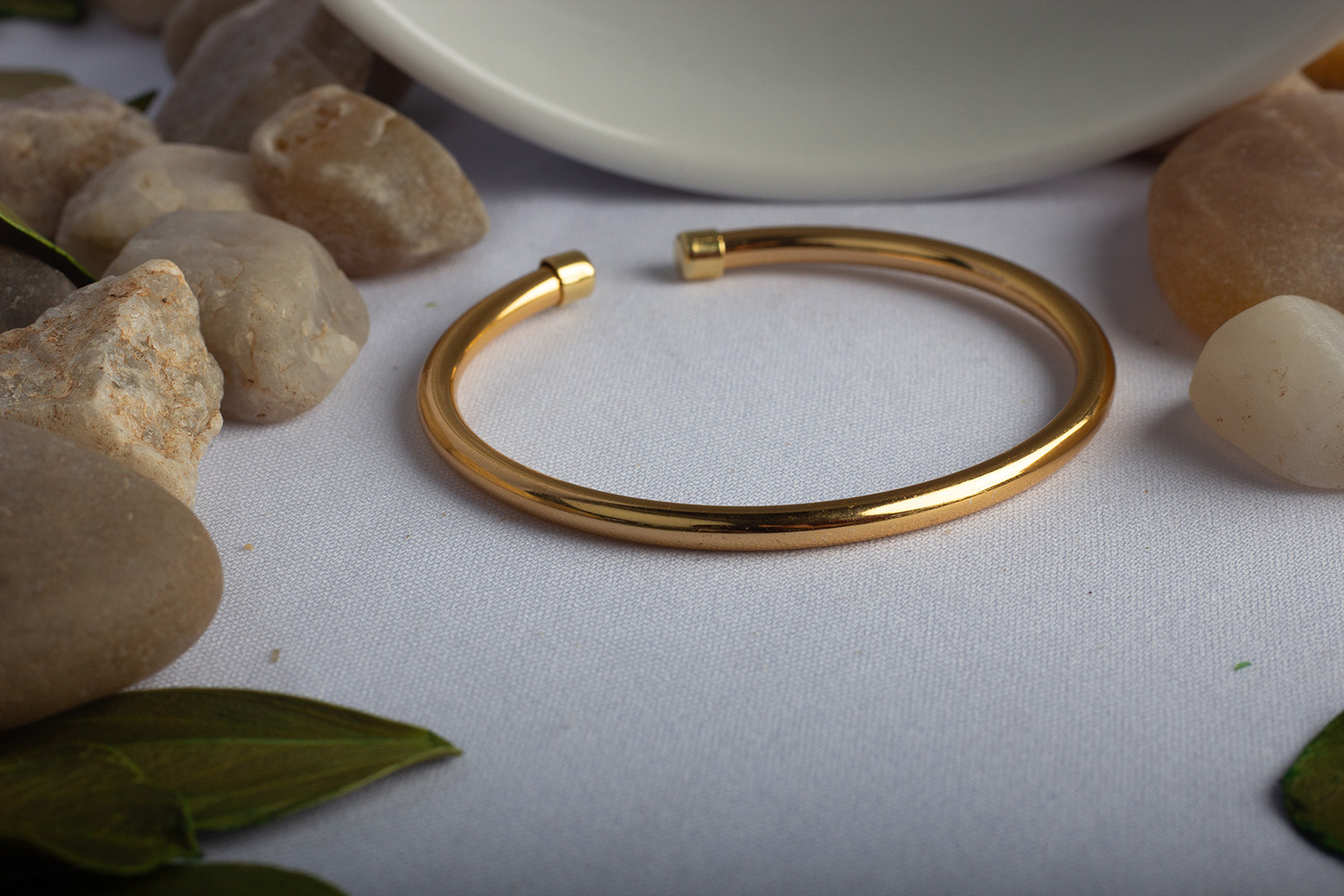 Bracelete minimalista dourado no banho de 2 milessimos mais verniz.