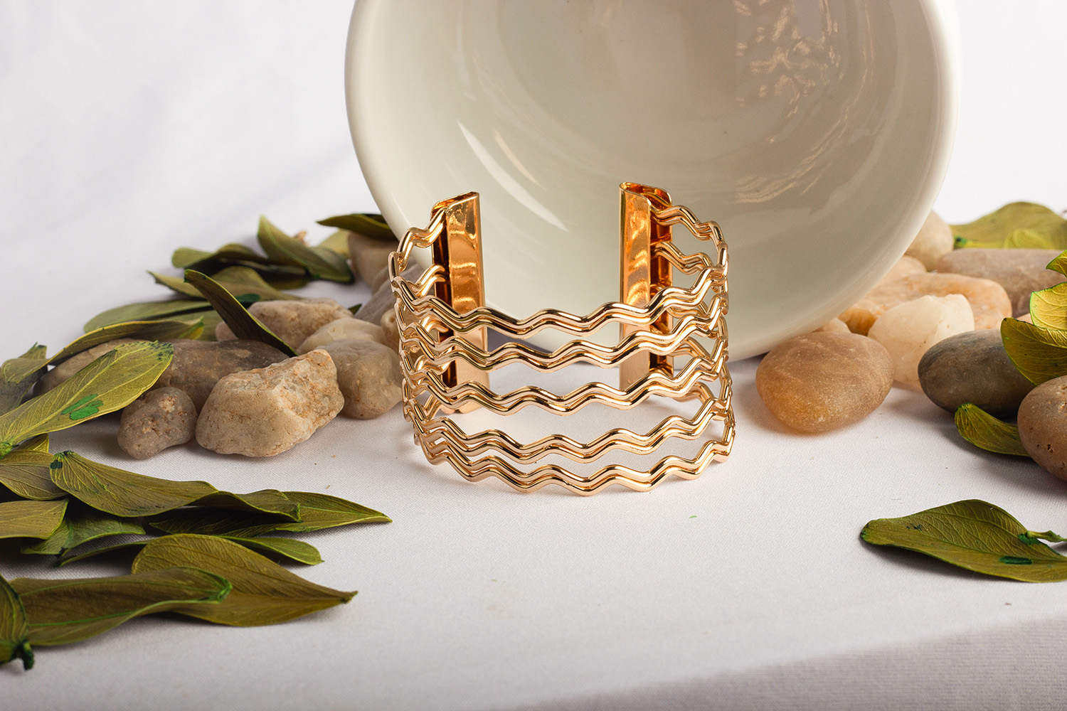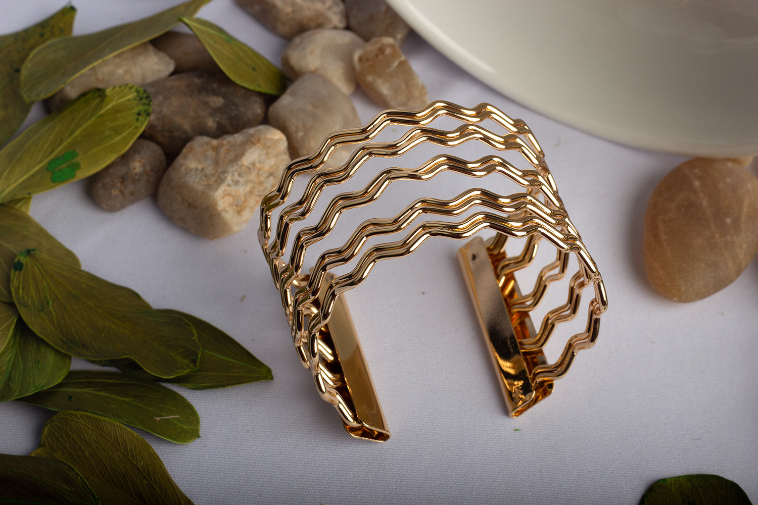 Bracelete zig zag dourado no banho de 2 milessimos mais verniz.