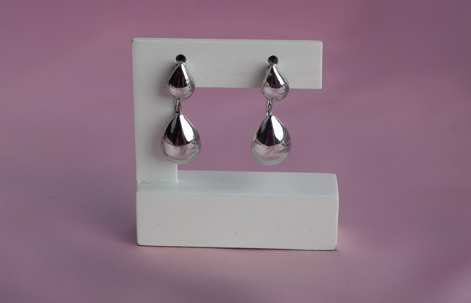 Brinco 2 em 1 gotas lisas prata, banho niquel diamante.