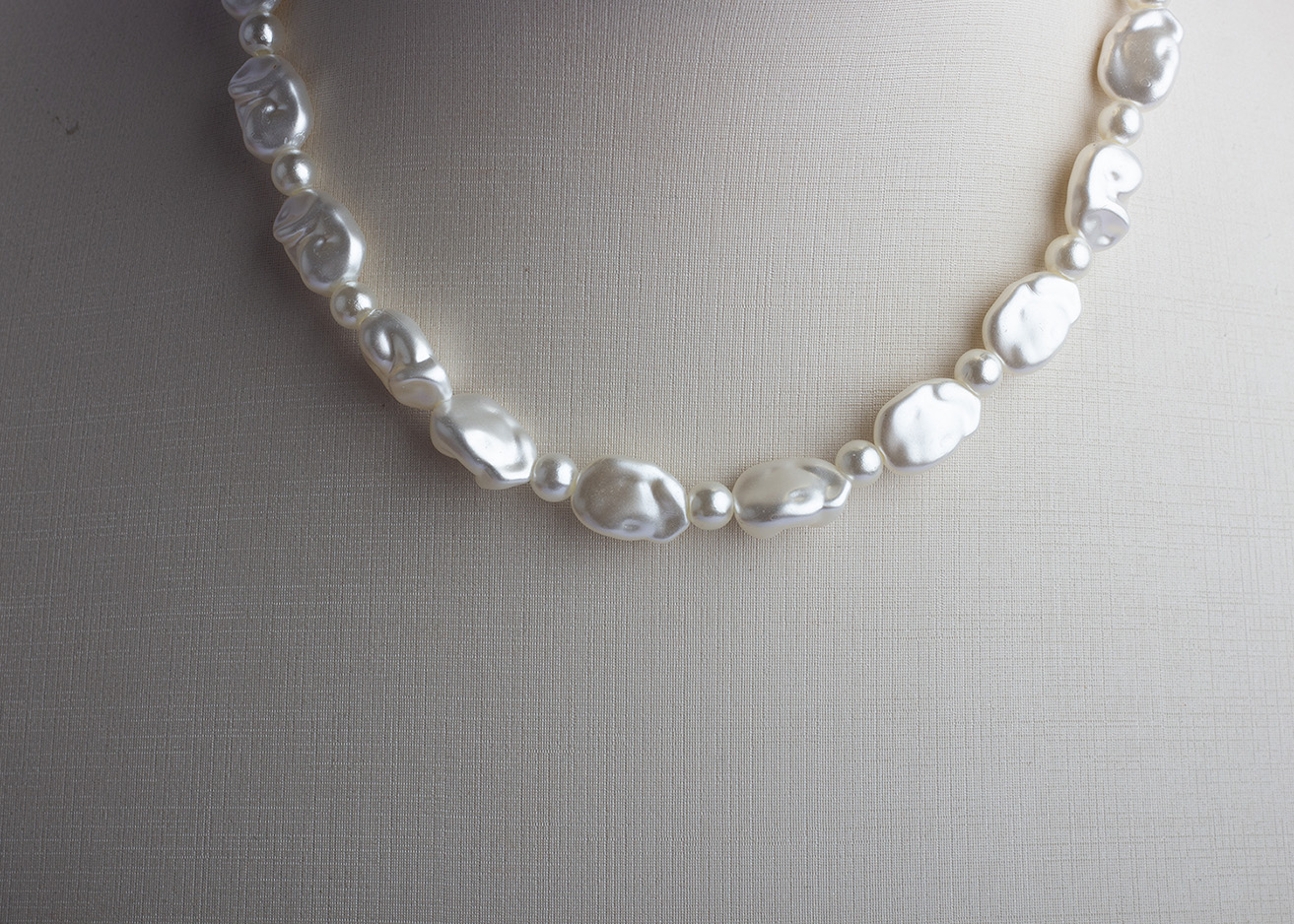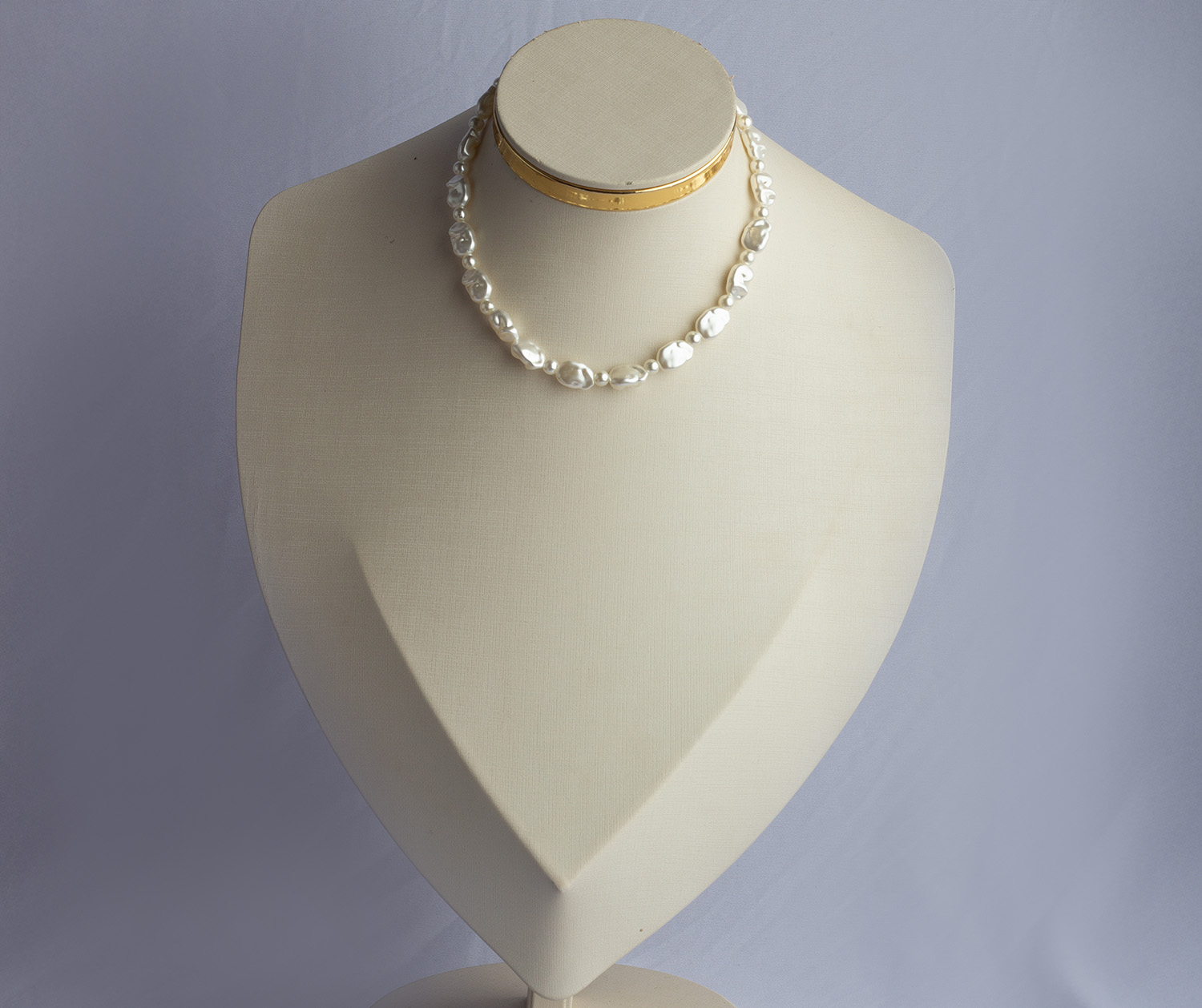 Choker de pérola barroca com extensor no banho níquel diamante.
