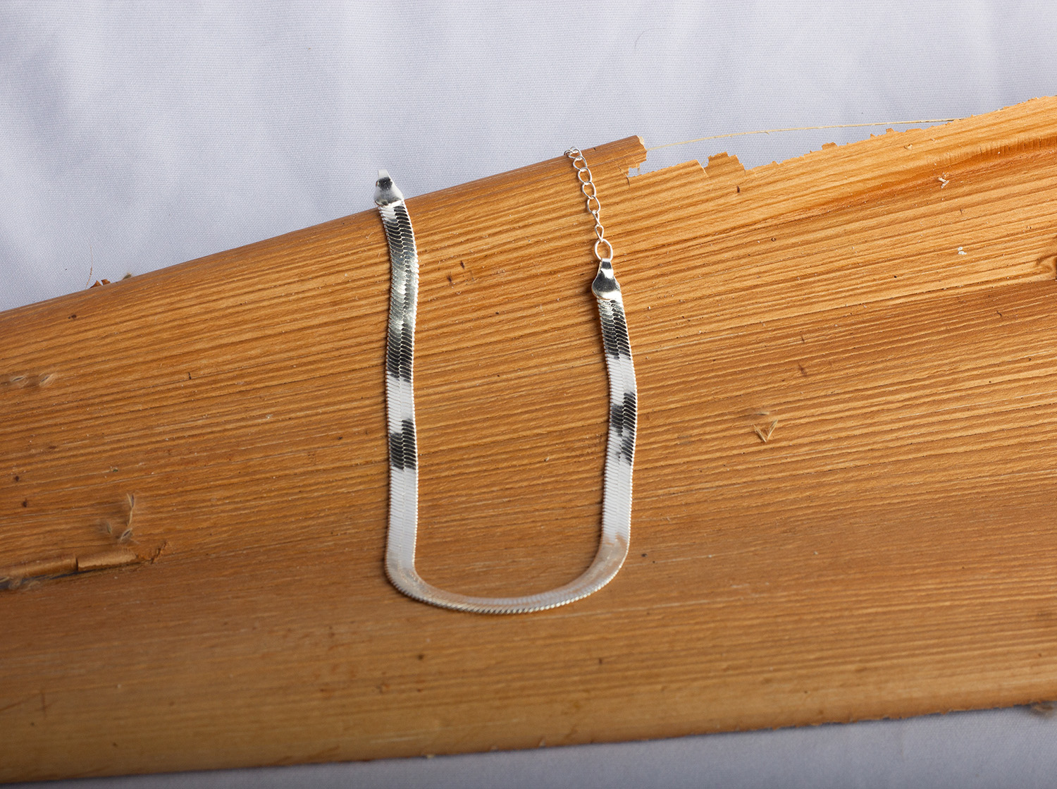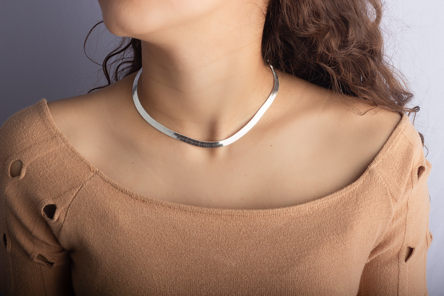 Colar choker fita prata no Banho de 10 milessimos de prata.